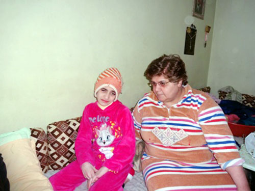 الطفلة ريا سعد الله جميل المصابة بمرض سرطان العظم حيث قدمت والدة
