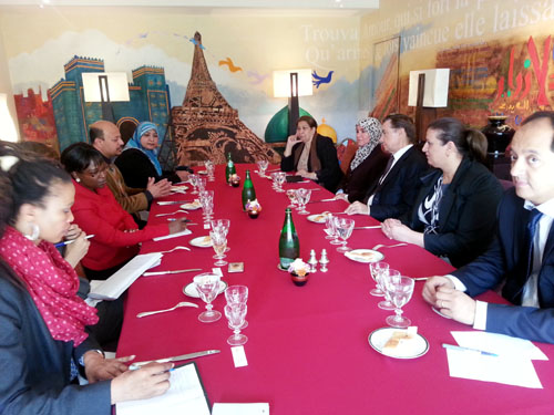 سوزان يوخنا - زوعا اورغ - بغداد: تلبية للدعوة الرسمية الموجهة من قبل سعادة السفير الفرنسي في العراق، الى السيدة وايليت كوركيس مسؤولة العلاقات العامة لاتحاد النساء الآشوري مع مجموعة من الناشطات العراقيات وبتاريخ 21 تشرين الثاني 2013. استقبل سعادة السفير دني غوير مجموعة من النساء الناشطات العراقيات حيث رحب بالحضور معبرا عن شكره لتلبية الدعوة ،وجرى خلال اللقاء مناقشة العديد من القضايا التي تخص وبشكل خاص حقوق المرأة ,ومناهضة العنف ضد المرأة في العراق والقضايا التي تخص المكونات العراقية والاقليات واشاعة مفهوم الامن والسلام ودور السفارة بدعم المشاريع بكل مايتعلق بحقوق الانسان للمنظمات المجتمع المدني ودعم الجهود لحث الحكومة على الاحترام والعمل خدمة لقضايا حقوق الانسان في العراق . هذا وحضر اللقاءعدد من النساء الناشطات و وفد من الامم المتحدة UNAMI والكادر المرافق لسعادة السفير الفرنسي.