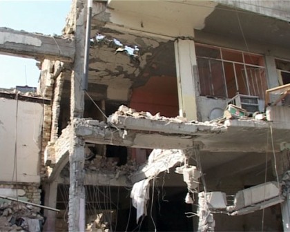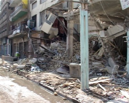 الحال سقطت الواجهة الأمامية لبنايتان سكنيتان وتهدمت