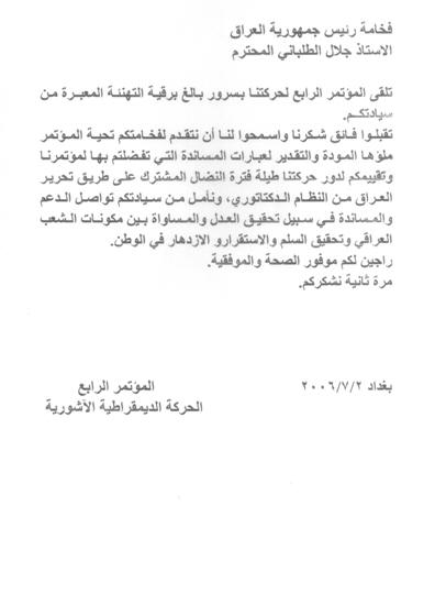 الرابع لحركتنا بسرور بالغ برقية التهنئة