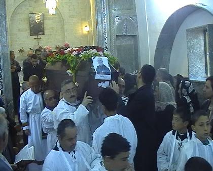 عبدالاحد صنا الى مثواهِ الاخير من كنيسة القوش ، وكانَ الفقيدُ قد توفي في