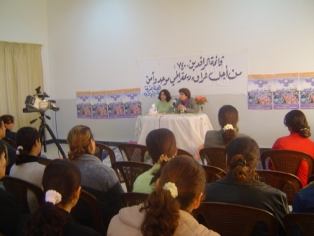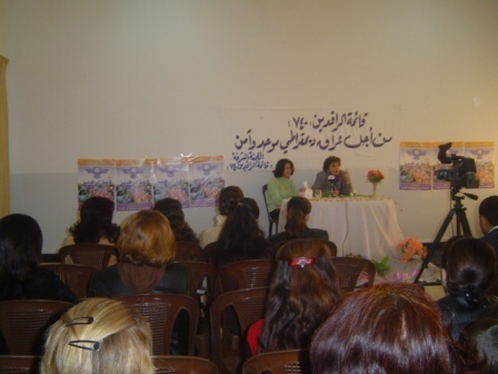 وعلى قاعة مركز تطوير المرأة. حاضرت في الندوة السيدة