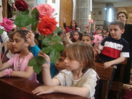 المحتفلون بهذه المناسبة باقات ورد وأغصان
