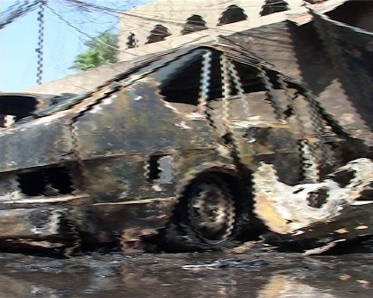 وعندها وصلت سيارات الشرطة إلى المكان حيث انفجرت السيارة