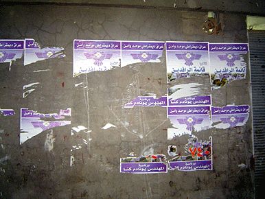 فقد تعرضت ملصقات ولافتات وبوسترات قائمة الرافدين