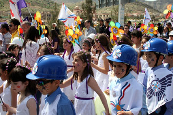 فرق كشافة حمورابي وكراديس الأطفال الذي ارتدوا ملابس بألوان زاهية تعكس