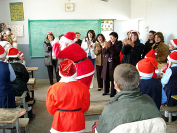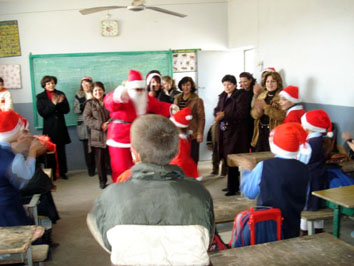 التعليمي كانوا قد توشحوا اغلبهم بلباس البابا نوئيل الاحمر الجميل فاختلطت