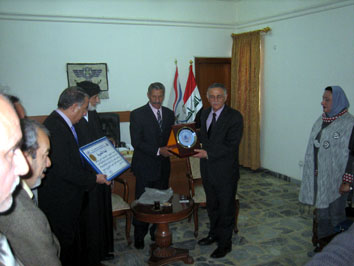 ببغداد، كما قدمت المنظمة شهادة تقديرية للسيد كنا لنزاهته واخلاصه بالعمل