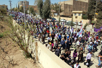 وسارت المسيرة عبر مسافة طويلة في شوارع دهوك بمشاركة الآلاف