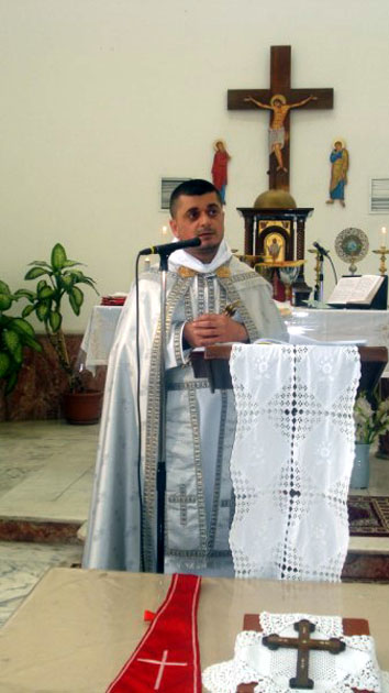 حنا حكيم راعي كنيسة المشرق الاشورية في دمشق وشارك في القداس ايضا القس