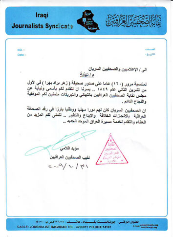 الصحافة العراقية بالانجازات الخلاقة والإبداع والتطور.. نتمنى لكم المزيد
