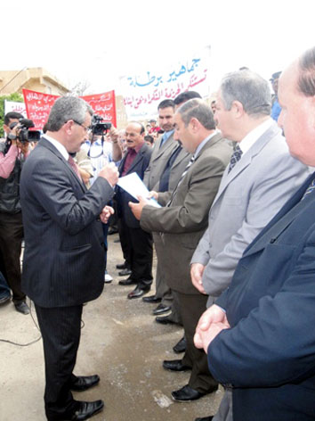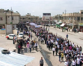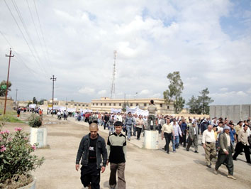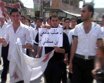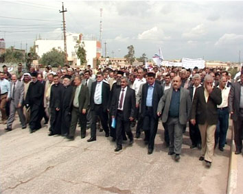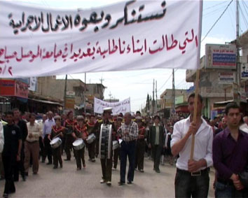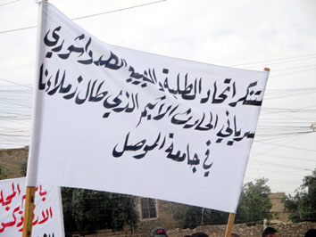 إلى دوامهم اليومي في جامعة الموصل وقد رفع المشاركين لافتات طالبو فيها