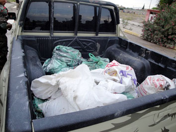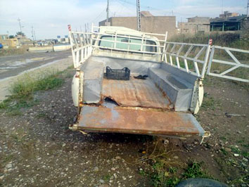 القوات الامنية على سيارة مفخخة نوع بيكب بيضاء اللون موديل 79 تحمل لوحة