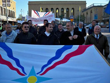 زوعا - اديسون هيدو تلبية لدعوة اتحاد الأندية الآشورية في مدينة كَوتنبيرغ السويدية وبالتنسيق مع مؤسسات شعبنا والأحزاب والتنظيمات السياسية والأجتماعية والكنائس , انطلقت مساء الأحد الثاني من نوفمبر 2008 , تظاهرة سلمية تضامنا مع ابناء شعبنا ( المسيحي ) من الكلدان الآشوريين السريان استنكاراَ لما تعرضوا له من عمليات ارهابية منظمة في الآونة الأخيرة , حضرها ممثلو هذه المؤسسات وحشد كبير من ابناء شعبنا المقيم في المدينة . حيث تجمع المتظاهرون في احدى الساحات العامة , وألقيت فيها كلمات وخطب من قبل الكهنة الأفاضل رعاة الكنائس المشرقية الآشورية والشرقية القديمة وكنيسة السريان الأرثوذوكس , وكلمة منظمة الحركة الديمقراطية الآشورية في كَوتنبيرغ أنصبت جميعها على استنكار ما يحصل لهذا الشعب المسالم والمكون الأصيل في العراق من ظلم وعمليات القتل والتهجير القسري وهدم المنازل التي تعرضوا لها مؤخراَ , بعد تصاعد وتيرة الأرهاب المنظم والمخطط له من قبل الجماعات الاجرامية والقوى المتطرفة المسيطرة والمتنفذة في الموصل , رفعوا فيها مذكرة الى الحكومة العراقية والجهات الرسمية السويدية طالبوا فيها القيام بدورهم بحماية القوميات الصغيرة ( ومحاسبة جميع المسؤولين الأمنيين في الموصل لفشلهم في تحقيق الأمن والكشف عن مجريات التحقيق مع من تم القاء القبض عليهم من المتورطين في هذه الأعمال ألأجرامية ليطلع عبيها ابناء شعبنا , والعمل على تأمين عودة النازحين من العائلات المسيحية الى مناطق سكناهم في الموصل بعد توفير اجراءات السلامة لهم والمطالبة بأعادة تثبيت المادة 50 الى قانون انتخاب مجالس المحافظات لضمان التمثيل العادل لجميع المكونات العراقية ) . اللجنة المنظمة للتظاهرة: كنيسة المشرق الاشورية الكنيسة الشرقية القديمة اتحادالاندية الاشورية الحركة الديمقراطية الاشورية الجمعية الخيرية الاشورية نادي اشور بانيبال نادي حمورابي نادي عشتار المؤسسات المشاركة في التظاهرة كنيسة السريان الأرثوذوكس أرسالية مار نرسي الكلدانية الحزب الشيوعي العراقي البيت الثقافي العراقي جمعية المرأة العراقية جمعية نينوى للمرأة الآشورية النادي الرياضي الآشوري المركز الثقافي الشرقي
