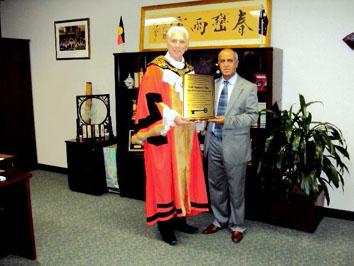 وفي نهاية اللقاء قدم السيد نج لالج محافظ فيرفيلد هدية رمزية للسيد
