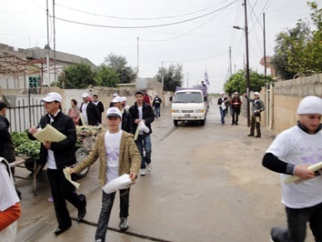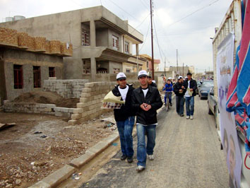 بدأت حملة بين الاحياء السكنية بتوزيع البوسترات والدعايات الانتخابية