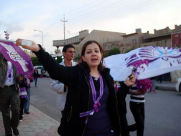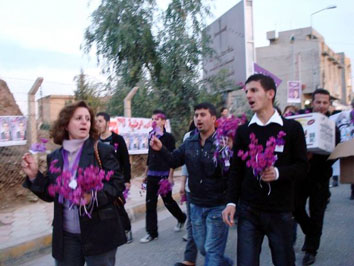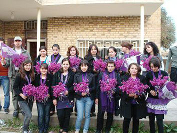 بتوزيع باقات ورود بنفسجية تحمل اسم ورقم قائمة الرافدين 389 وتخللت الحملة
