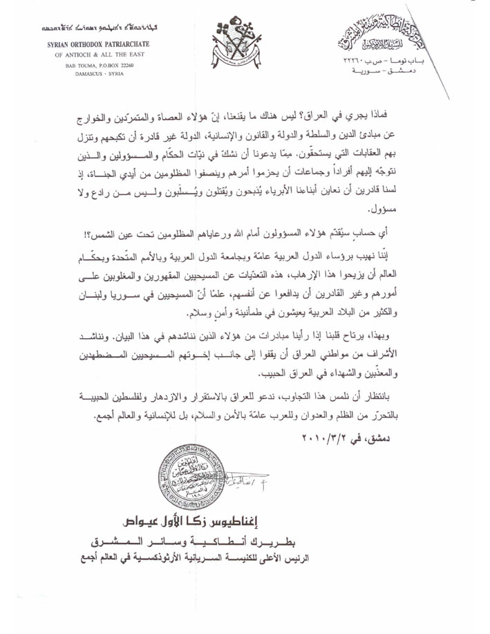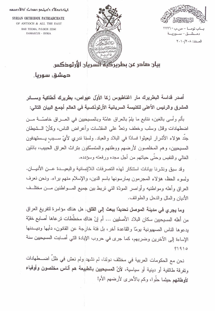 اصدرت بطريركية السريان