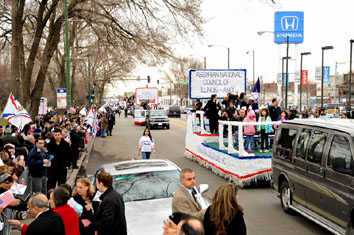وبتاريخ 03 / 04 / 2011 شهدت مدينة شيكاغو الأمريكية مسيرة راجلة لأبناء