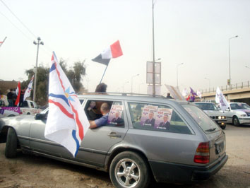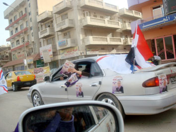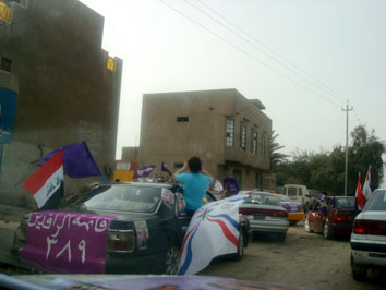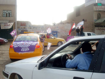 مسيرة بنفسجية بالمركبات حملو فيها مؤازري قائمة الرافدين 389 الرموز