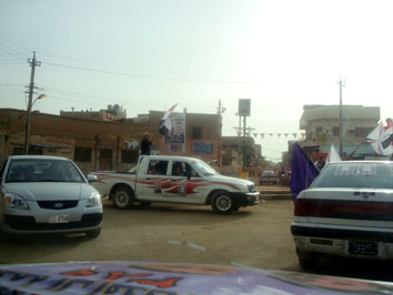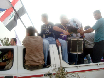 العراقيين الذين وقفوا يؤازرون المسيرة ، وتجمع المحتفلون في مقر الحركة