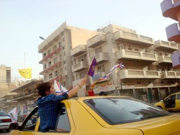 القومية والوطنية ، وجالت المركبات شوارع العاصمة بغداد مع هتافات