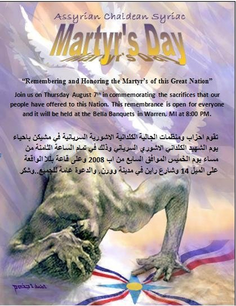 يوم الشهيد الكلداني الآشوري السرياني وذلك في تمام الساعة الثامنة من مساء