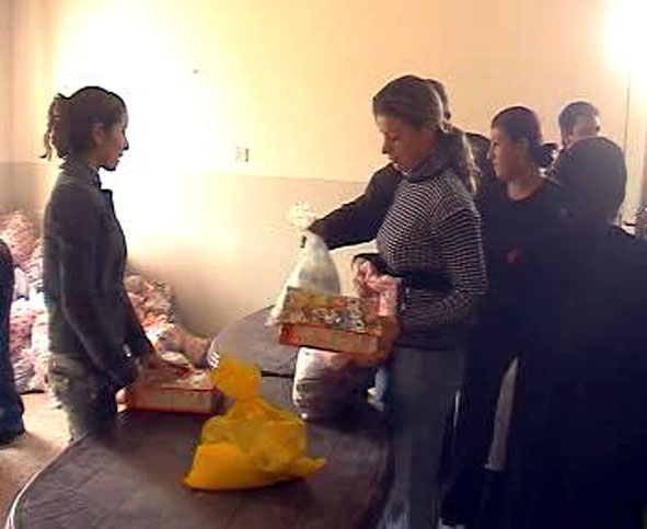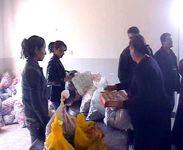 وحليب وألبسة أطفال . وقد وزعت هذه المواد بالتعاون مع جمعية (مساعدة