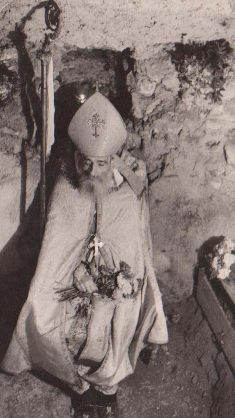 يده كما لو كان جالسا على العرش فهذا كان احد الطقوس المتبعة لدفن المطارنة