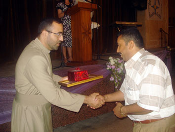 سقوط النظام السابق عام 2003 وبعد القاء الكلمات جرى توزيع الهدايا على