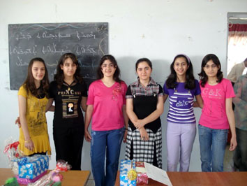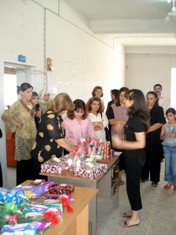في 3-6-2008 م ووسط فرحة الاهالي والكادر التعليمي وزعت السيدة جانيت