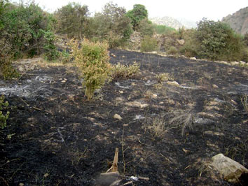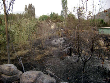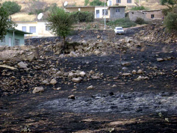 الإشارة إلى أن أراضي قرية جلك قد تعرضت لإضرام النيران فيها لأكثر من مرة