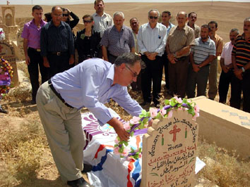 مارت شموني بوضع أكاليل من الورد على ضريح الشهيد الخالد ماهر منيب في