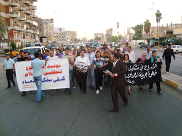 ابتدأت المسيرة بإشعال الشموع والسير راجلاً من ساحة "كهرمانة"
