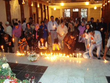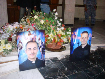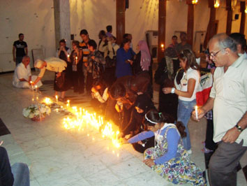 على أرواح الشهداء داخل الكنيسة في مشهد يدل على وحدة العراقيين وتلاحمهم