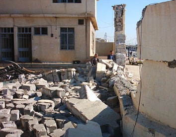 القديمة وقد بدت أثار الدمار كبيرة وحجم الأضرار من خلال أثار السياج