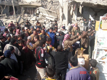 مواد غذائية ومنزلية ووزعت بشكل مباشر على أكثر من 300 عائلة منكوبة وفي