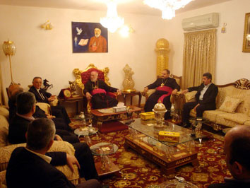 والعالم في مقره البطريركي ببغداد لتقديم التعازي بوفاة والدة قداسته.