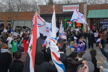 الكلداني السرياني الأشوري رافعين ومرددين الشعارات والأهازيج القومية