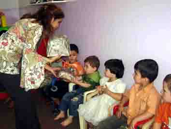 وضرورة الاعتناء بالاطفال لانهم جيل المستقبل.. وتبعتها توزيع الحلوى و
