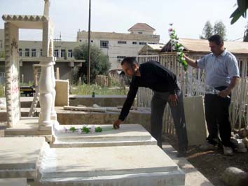 صباح ذات اليوم بزيارة مقبرة ناحية عنكاوا ووضع أكاليل من الورود على اضرحة