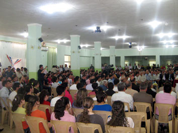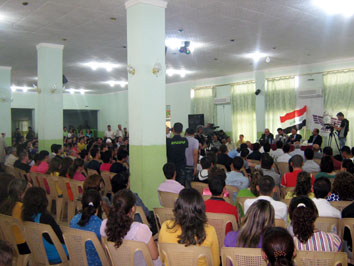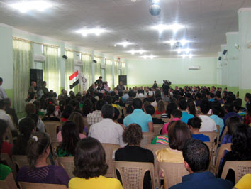 بخديدا ، وحضر الندوة مئات من الطلبة الذين استهدفوا وبضمنهم الجرحى