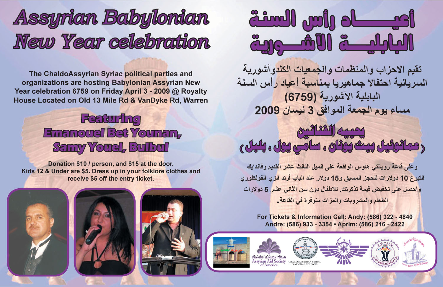 تقيم الاحزاب والمنظمات والجمعيات الكلدواشورية في ميشغان احتفالية اكيتو مساء يوم الجمعة الموافق 3-4-2009 .