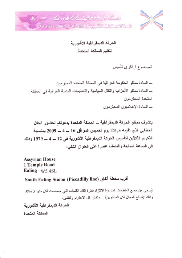اعلان حفل خطابي في لندن بمناسبة التأسيس