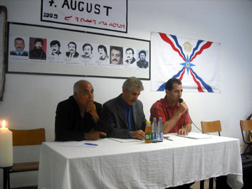زوعا- المانيا تاريخ 8-8-2009 م وبتمام الساعة السادسة والنصف مساءافي قاعة النادي الاشوري الثقافي بمدينة كوتيرسلو اقامت الحركة الديمقراطية الاشورية وبمشاركة حزب تحرير اشور حفلا تأبينيا بمناسبة عيد الشهداء ولقد افتتح الحفل بدقيقة وقوفا وصمتا على اروح شهدائنا الابرار وتلاه انشودةا قومية انشدها المغني ريمون حنا بعنوان(نينوى ايمو دكابوري_نينوى ام الرجال). لقد شارك في هذه المناسبة جمهورا غفيرا من ابناء شعبنا لأحياء ذكرى عيد الشهداء الخالدين كما وتحدث السيد احو حنا لمحة عن حياة نضال شهدائنا الذين اوفو بدمائهم الذكية انرة مسيرة ابناء امتهم ومن ثم القا السيد يعقوب اولجا كلمة تحدث فيها عن نضال شهداء الحركة الديمقراطية الاشورية ومعنى الشهادة ونضال الحركة ,وكما قدمت الشابة لوسينا شابو قصيدة بالالمانية بمعنى (الشهادة وحب الوطن)وفي الحتام قدم المغني ريمون مع عازف العود جان توما اغنية بالسريانية (دشتت باعقوبة).ومن ثمئذا اختم الحفل بكلمة القاها السيد اندراوس بانيبال بكلمة شكر لكل من شارك في هذا الحفل حاملين معهم كل واحدا منهم باقة ورد بمشاركتهم لتخليد هذه الذكرى يمكنكم مشاهدة الحفل على الرابط الاتي: http://www.youtube.com/user/94assyrer