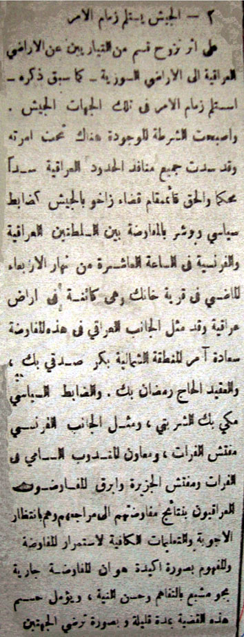 وقامت السلطات الفرنسية بتجريد الاشوريين الذي عبرو نهر دجلة من معبر