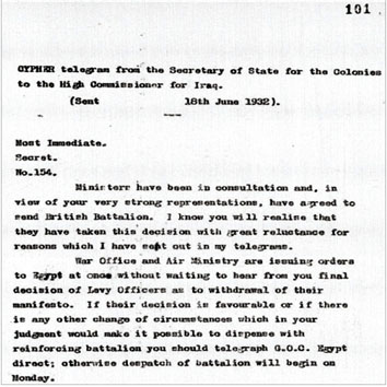 جوابية لبرقية الملك فيصل الذي طالبه بضرورة قبول العائدين من الاشوريين