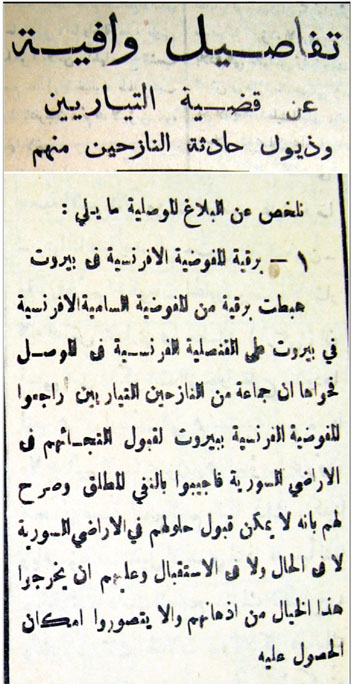 ضباط الحدود الفرنسيين اللجوء ومفاتحة بيروت لاستحصال موافقتها على السماح