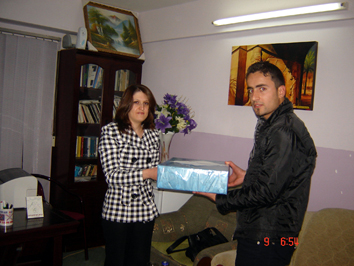 وقامت الدكتورة جهان خلال الزيارة بتكريم أحد الطلبة من أبناء شعبنا