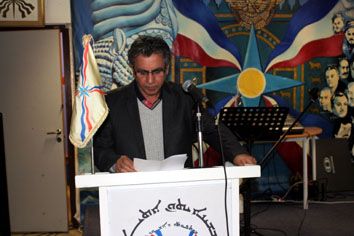 وبعدها اعتلى المنصة مباشرة مسؤول فرع اوربا للحركة الديمقراطية الآشورية